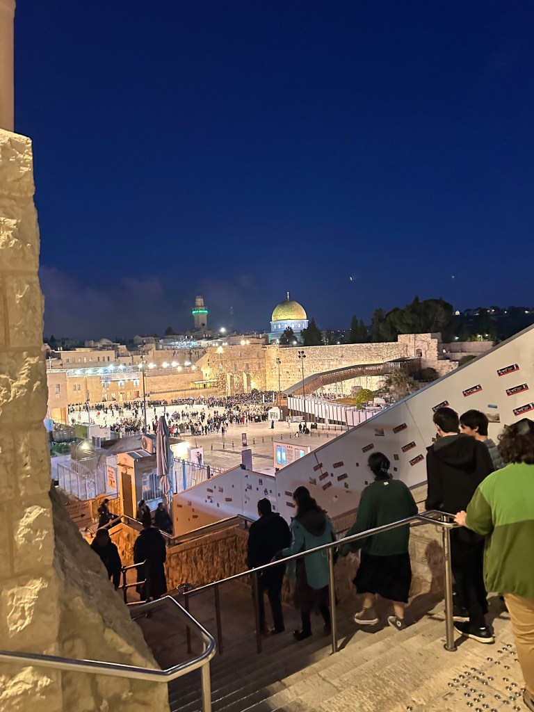 The next day, we went to an Orthodox Synagogue in the middle of Jerusalem. I do not come from an Orthodox background; my family is more on the Conservative/Reform side. However, sitting in the synagogue and listening to the Rabbi was extremely impactful as I realized Judaism comes in many different shapes and sizes. People tend to draw harsh lines on whether someone is Reform, Conservative, or Orthodox, and it has caused Jews to become separated from one another. This experience of me sitting in the shul was really eye-opening as I saw the different ways of praying. Even though I hardly understood most of what the Rabbi was saying as it was all in Hebrew, I still felt connected to the words he was sharing. It was a surreal experience as I am usually not the type to enjoy going to synagogues.