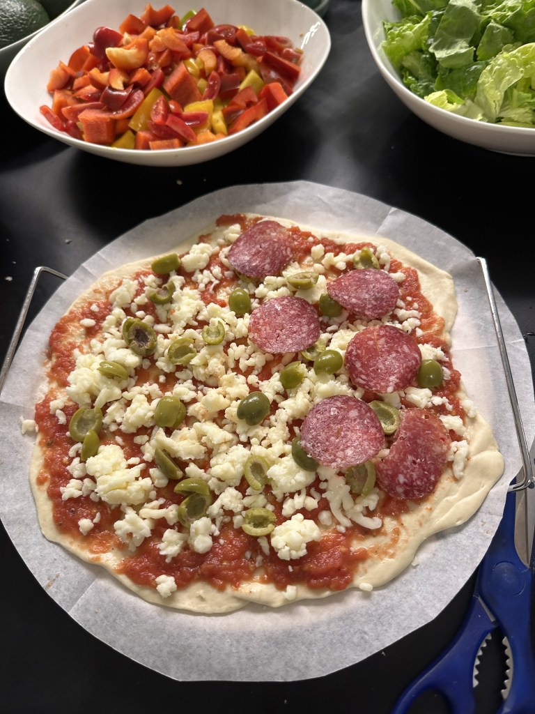 One of our open weekends fell at the end of this week. I love open weekends. An open weekend means I can be signed out for 24 hours to be off campus with a family member or friend. This open weekend I spent it with one of my camp friends, Shira. I go to Camp Beber in Wisconsin and my friend Shira who went with me happens to live 15 minutes from my school here in Hod Hasharon. It’s pretty awesome that she lives in Herzilya. Anyway, I went and stayed with her family and It was nice to be around a family and have family meals. As much as I love my freedom here at Muss, I miss my mom’s cooking. Shira’s family doesn’t speak much English but it was fun to help make homemade pizza for dinner. I was in charge of the tomato sauce and salad and I practiced my hebrew. When I’m around them I definitely have to step up my hebrew game. 🙂