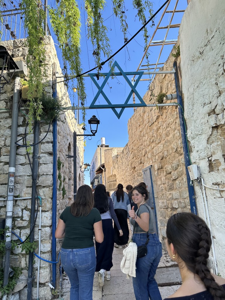 We closed out week in Tzfat, the most northern part of Israel we have been. I have been to Tzfat this past summer with my family before so I already knew what it was like there. The first thing we did was bake Challah for Shabbat. This was actually really fun and I felt connected with my mom who bases Challah every Friday for our Shabbat guests. Mine turned out sooooo good, I ate the whole thing. Due to the war in the North with Hetzbolla firing indiscriminate missiles at Israeli towns, Tzfat is pretty much a ghost town now. All the shops are sadly closed. Tzfat is an amazing artist town and spiritual home Kabbalah, Jewish mysticism. It was very quite. We got ready for Shabbat and took pictures at this beautiful lookout. This one Shabbat was very different than any other we have had here. We were all split up into groups to go to different host families for dinner. Note, the families were all Hasidic Jews. I was lucky and had lots of friends in my group. We showed up to this random house in the dark and had Shabbat with them. It was a really unique experience. Even tough my Hebrew is getting better each day, our family spoke English, thankfully. We each went around the table and shared a story about ourselves. I spoke about my experience in Poland and how it has impacted me as a Jew. It was definitely nice to have a home-cooked Shabbat dinner.