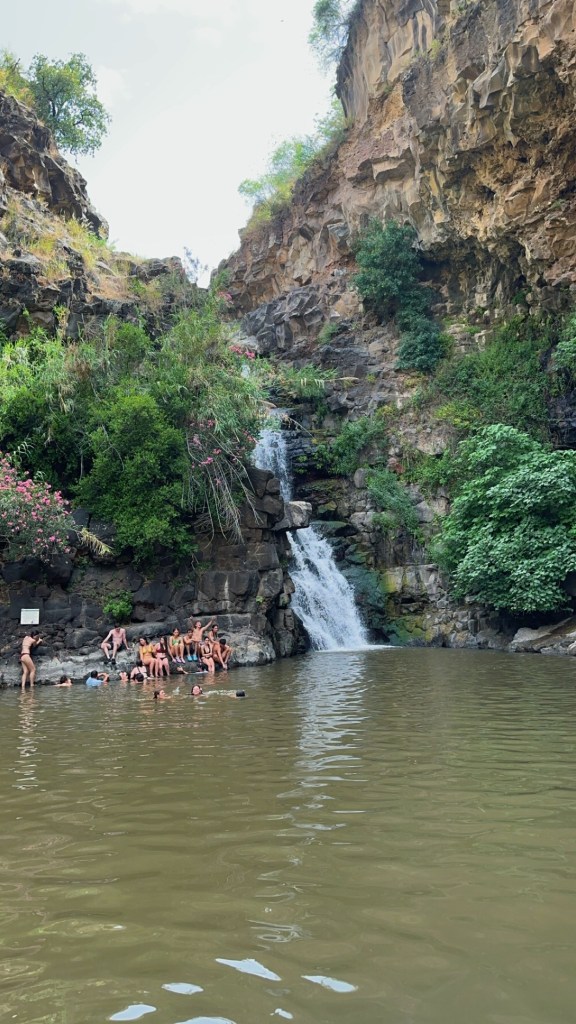 The next morning we hiked up to an insanely gorgeous waterfall in the Golan Heights. It was absolutely paradise. All of us turned into fish and went swimming in and around the waterfall and jumped off the rocks. It was a pure bliss. After our swim, we hiked back up to the bus which was an insanely long and HOT journey, but we made it. It was a miracle for sure. We drove all the way to Zecron Yakov for DOTS. I went out to dinner with my friend Mia, and we shopped as well. The day could not have been more perfect.